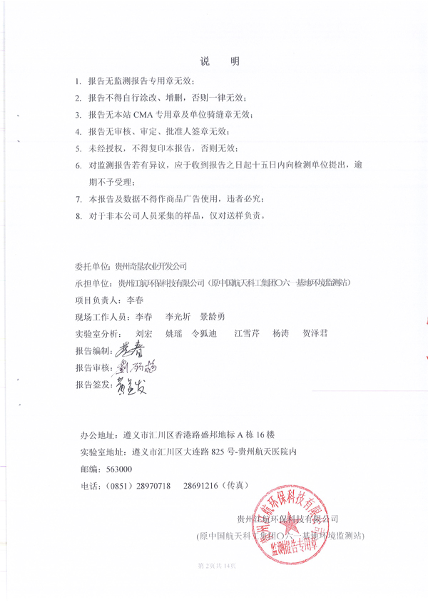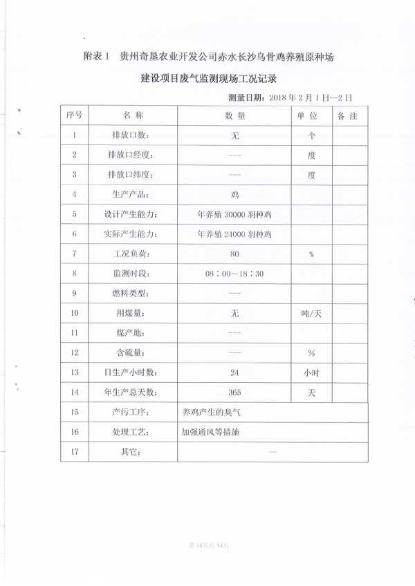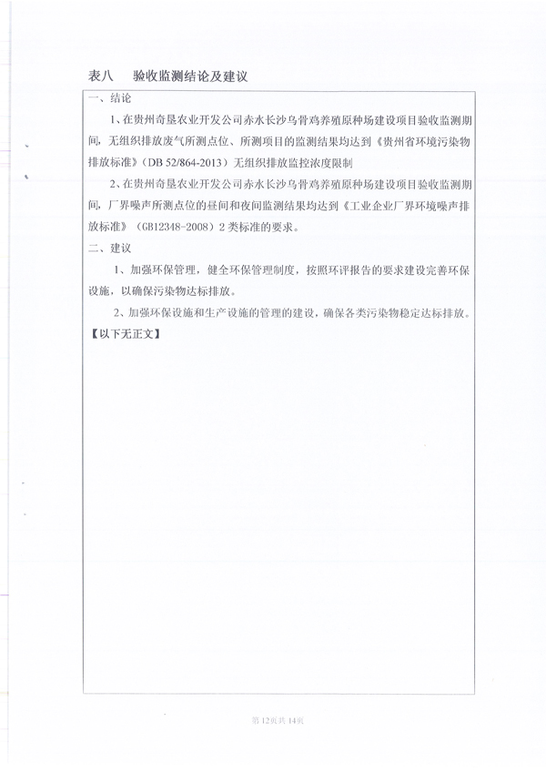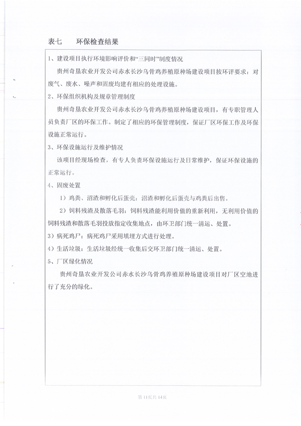 關于貴州奇墾農業開發有限公司赤水長沙烏骨雞養殖原種場驗收監測報告的公示