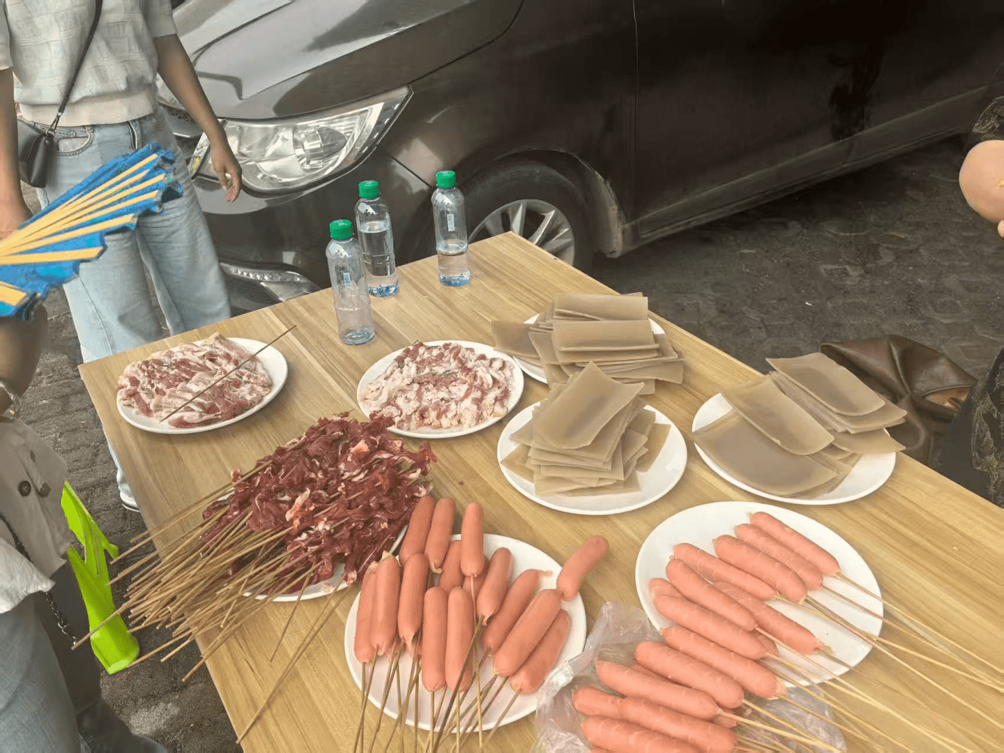 活動現場,精心籌備的食材區格外吸睛。花生、各類鮮果擺放整齊,還有特色豆制品等美食琳瑯滿目,燒烤食材區的鮮肉串、火腿腸、寬粉也已備好,仿佛在召喚著一場美味盛宴。這滿桌的食物,是公司為員工們搭建的歡樂橋梁,更是凝聚團隊的溫暖紐帶。